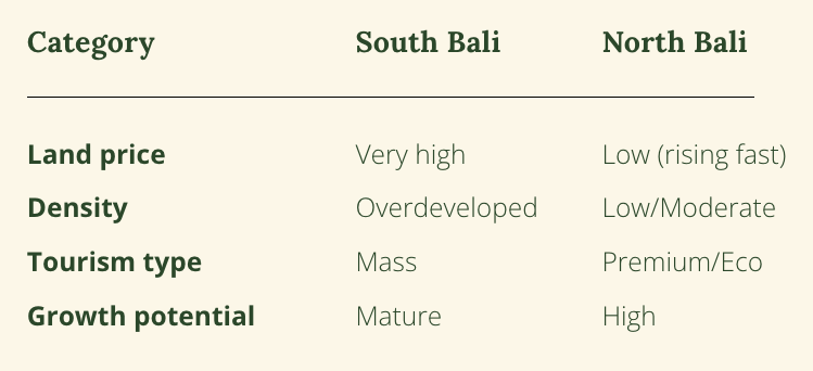 A larger coastal region with long-term strategic value, offering expansive land opportunities suitable for master-planned developments. Lovina attracts a different demographic—families, retirees, and wellness travelers—making it ideal for hospitality projects, branded villas, and long-term land banking.